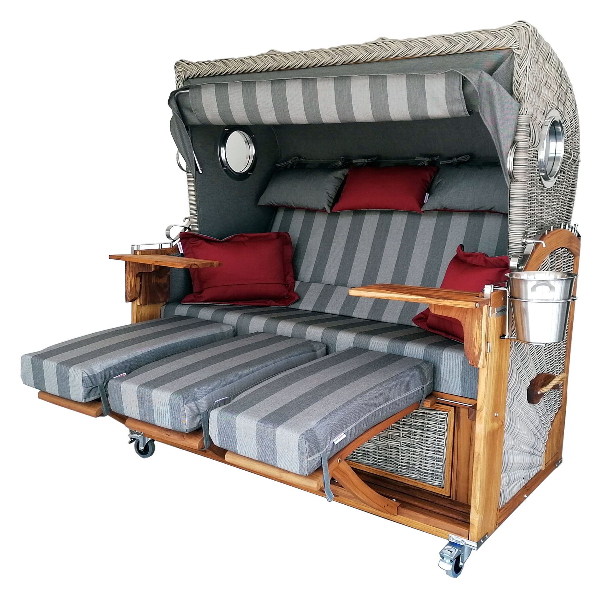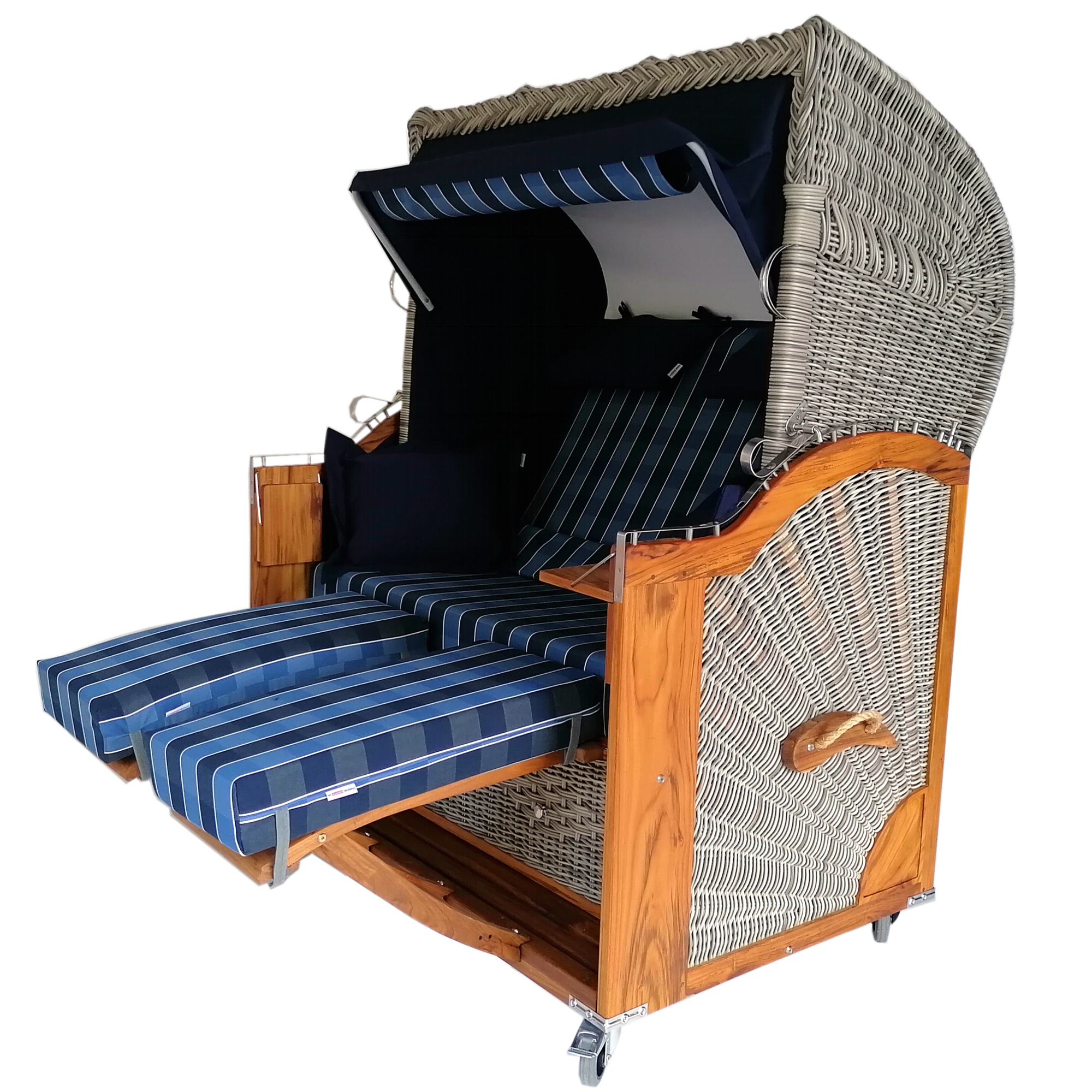 Die folgenden Fotos zeigen Design- und Farbbeispiele unserer Strandkörbe. Bitte beachte: Da wir jeden Strandkorb individuell fertigen, sind weitere Stoffe, Farben und Farbkombinationen möglich.